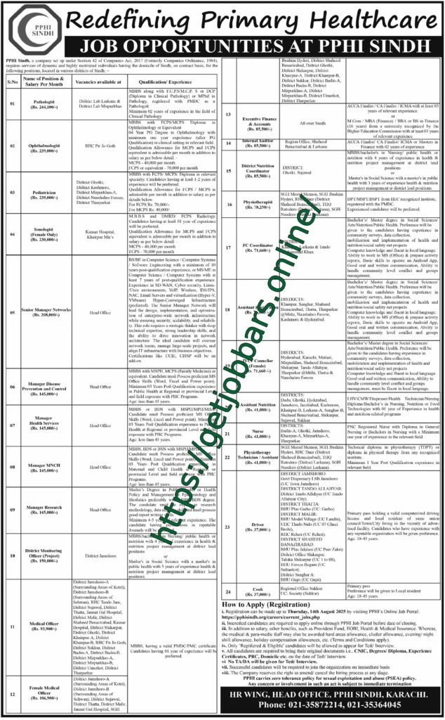 Karachi, Sindh – PPHI Sindh, a leading not-for-profit organization dedicated to revolutionizing primary healthcare, has unveiled a significant recruitment drive for August 2025. This presents a prime opportunity for highly qualified and experienced healthcare and administrative professionals to join a mission-driven entity committed to enhancing health service delivery across Sindh.